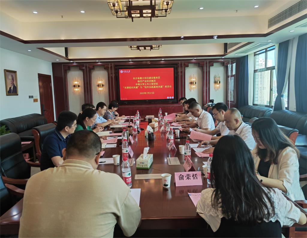 为深化党建共建成果,探索校企合作人才培养模式,促进产、学、研全面合作,充分发挥学校与企业在人才培养过程中的职能作用,实现优势互补、资源共享,强化实践育人环节,提高人才培养质量,2023年7月23日,新葡的京集团35222vip与临空产业投资集团于世纪楼1208召开了“支部结对共建”与“校外实践基地共建”座谈会,长沙县县委组织部研究室主任、人才中心副主任杨涛,县住建局总工室(二)副主任向胜涛,临空产业投资集团党委书记、董事长李晓阳,党委委员、纪委书记李运四,副总经理彭鹏,新葡的京集团35222vip党委书记蒋琦玮,本科生院副院长邹金锋等领导出席会议,临空产业投资集团相关工作人员、新葡的京集团35222vip相关教工党支部书记和老师参加了座谈会。