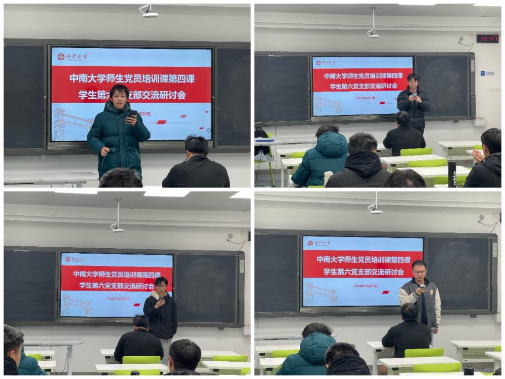 会议第三项,支部成员就“中南大学师生党员基本培训第四课”开展党课研讨会,分享个人对本次学习的收获与感受。胡后山、张欣、张玄希、夏桂华、蔡齐祥、苗淑晴、宋毅、陈卉、谭源、叶茹诗、宋金鹏、陈继伟、黄菡乐等13位同志依次分享了其心得体会。
