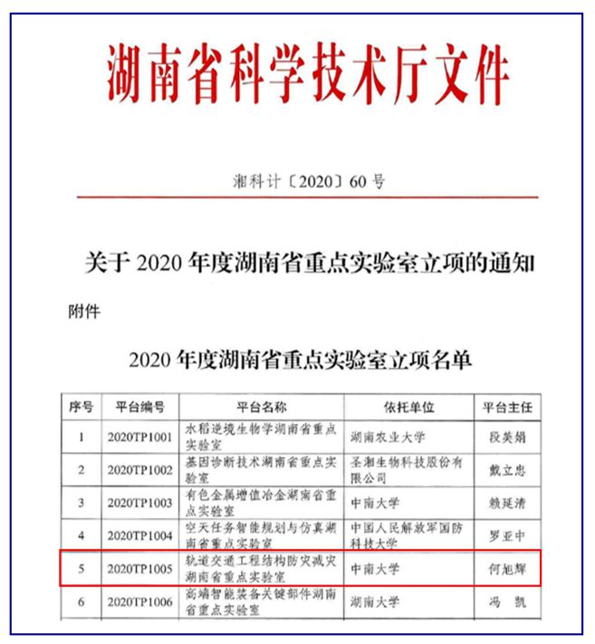 轨道交通工程结构防灾减灾湖南省重点实验室是湖南省科学技术厅2020年12月批准成立的省级重点实验室【批准文号(2020TP1005)】。实验室由中南大学牵头,中南大学、中铁五局集团有限公司、中国铁路广州局集团有限公司、沪昆铁路客运专线湖南有限责任公司、长沙市轨道交通集团有限公司和株洲时代新材料科技股份有限公司联合共建。