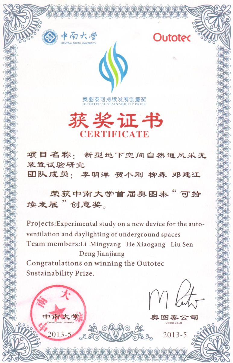 项目类型:中南大学首届奥图泰可持续发展项目(一等奖)